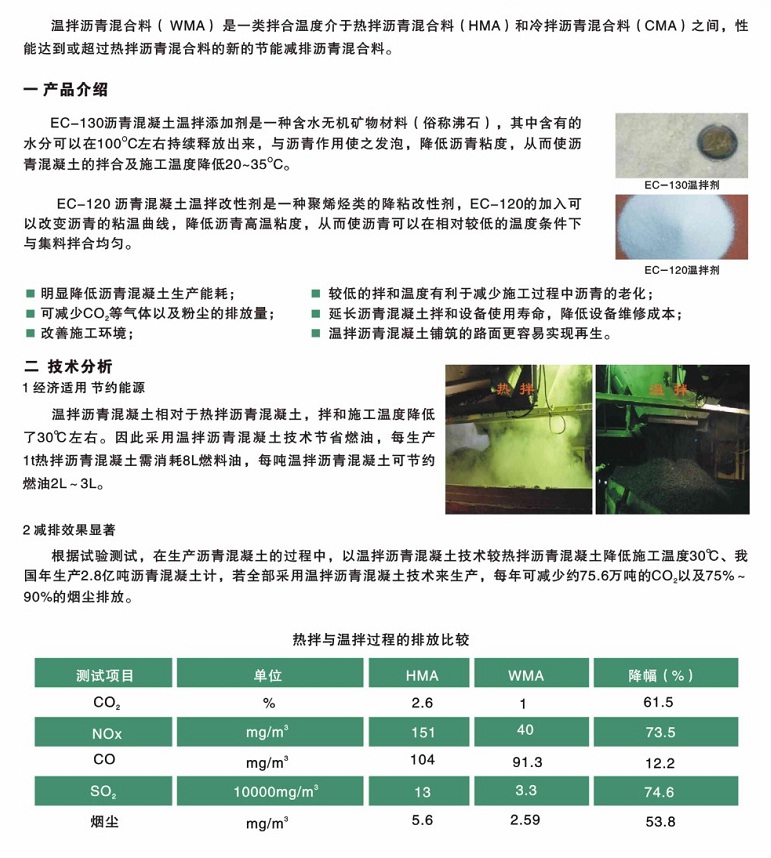 概要: 溫拌瀝青混合料(WMA)是一類拌合溫度介于熱拌瀝青混合料(HMA)和冷拌瀝青混合料(CMA)之間,性能達到或超過熱拌瀝青混合料的新的節(jié)能減排瀝青混合料。