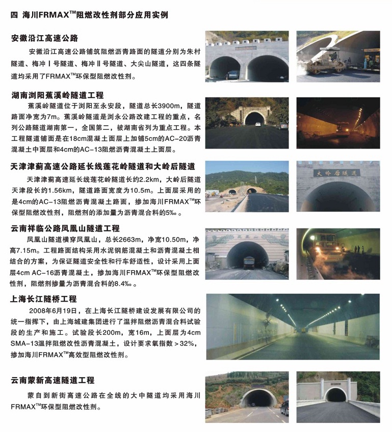 簡介:由于瀝青是易燃材料,一旦發生火災,瀝青混凝土中的瀝青可能會在高溫下燃燒,并釋放大量的有毒氣體,加上隧道內部通風條件差,從而給人元逃生和施救帶來很大的困難,造成不堪設想的人員和財產損失。因此,在長大隧道內,對瀝青混凝土路面材料做阻燃抑煙處理十分必要。
