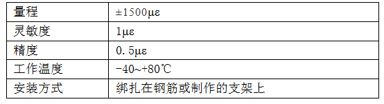 ????? OP-NY-01型埋入式應(yīng)變計(jì)可直接埋設(shè)于混凝土或鋼筋混凝土內(nèi),以監(jiān)測混凝土的靜態(tài)應(yīng)變。內(nèi)置溫度傳感器可同時監(jiān)測測點(diǎn)處的溫度,便于進(jìn)行溫度補(bǔ)償,提高傳感器在不同溫度條件下監(jiān)測數(shù)據(jù)的準(zhǔn)確性和可靠性。