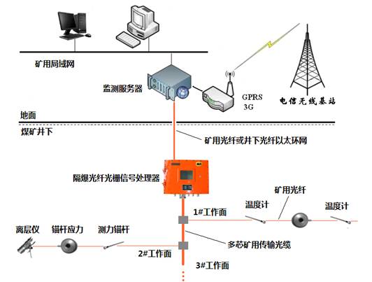 ZYG礦用光纖光柵頂板應力監測系統是用于煤礦頂板狀態在線監測系統。系統將光纖傳感、計算機檢測、數據通訊和傳感技術融為一體。實現了復雜環境條件下對煤礦頂板狀態的自動監測和匯報。系統裝置通過通過安標國家礦用產品安全標志中心的性能檢測和安全檢測,取得”MA”礦用證書。